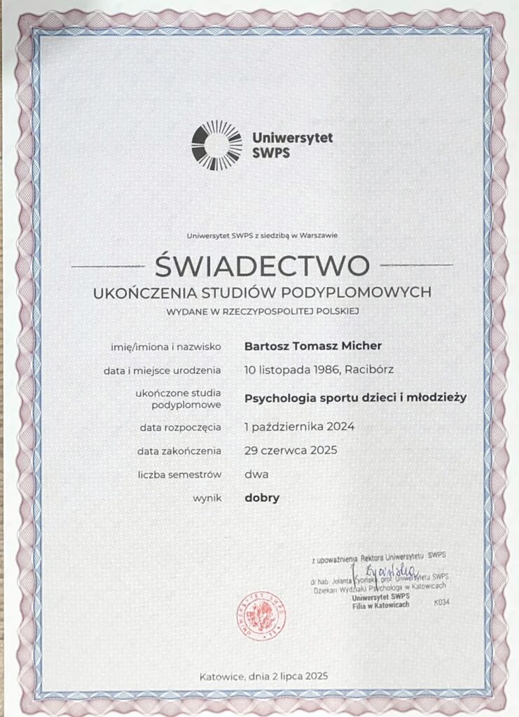 Jako psycholog sportu z dekadą doświadczenia w zarządzaniu międzynarodowymi projektami korporacyjnymi, rozumiem presję sukcesu. Dziś, jako tata, łączę te wszystkie role, by pomóc Ci stawić czoła wyzwaniom w Twojej własnej „podróży bohatera”.